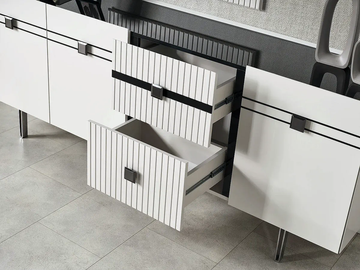 Dinamik hatların ve modern tasarımın yansıması olan Akra Yemek Odası, Meda Mobilya güvencesiyle yaşam alanlarınıza değer katıyor. Bursa mağazamızda sunulan bu koleksiyon, her detayda estetiği ve kullanım kolaylığını bir arada sunar.