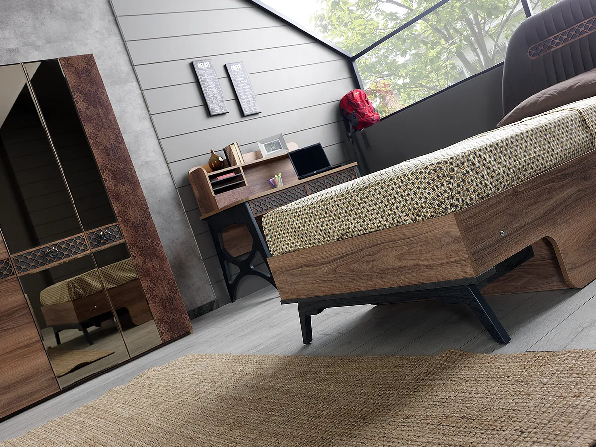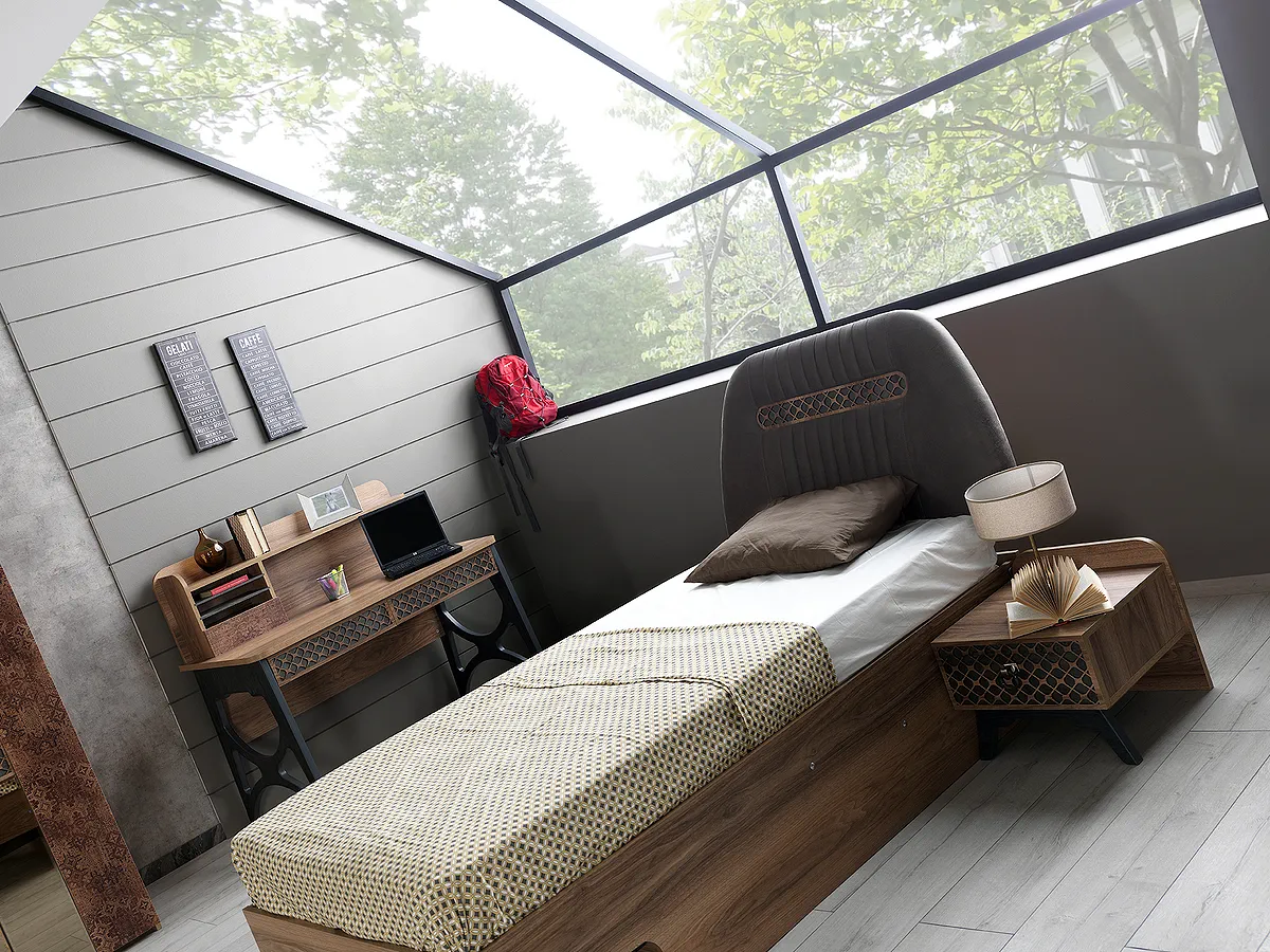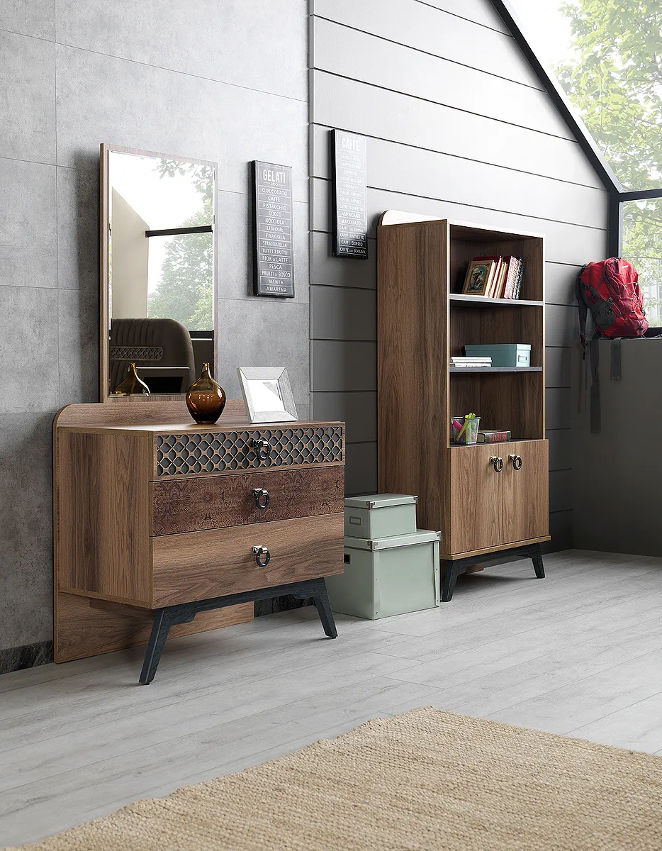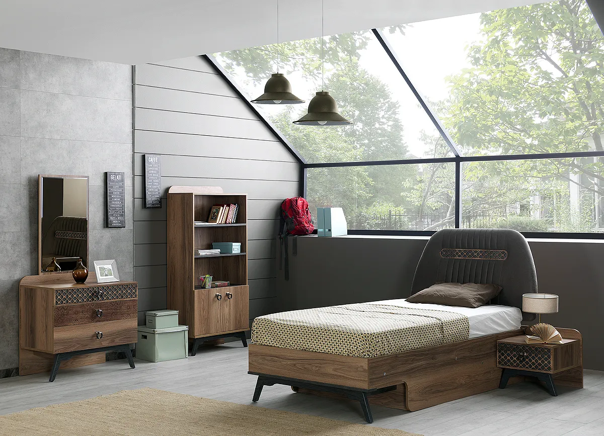 Likya serisi, zengin modüler yapısı ve şık çalışma masası ile komple bir genç odası çözümü sunar.