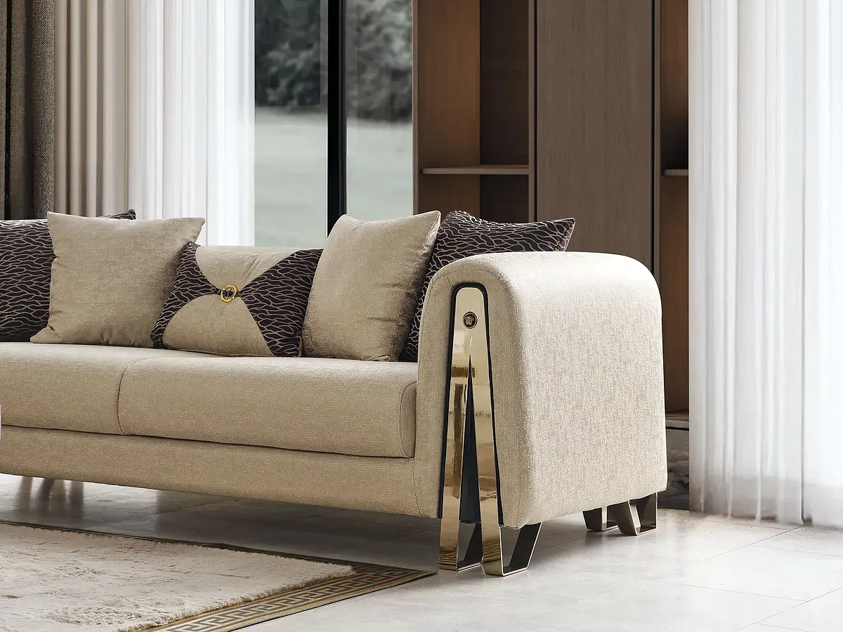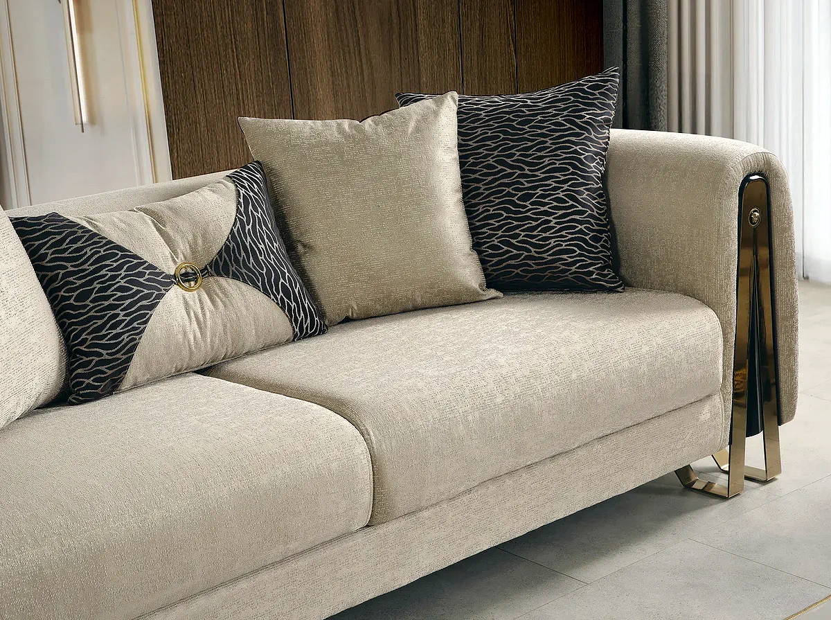 Oval hatlarıyla zarafeti salonunuza taşıyan Vera Koltuk Takımı, yumuşak dokulu kumaşı ve Meda Mobilya konforuyla öne çıkıyor. İnegöl mobilyası kalitesini Bursa mağazamızın güler yüzlü hizmetiyle buluşturan bu set, konforlu bir oturum deneyimi sunar.